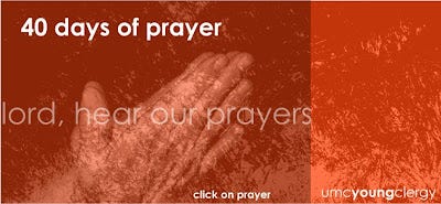 I am excited about the upcoming 40 Days of Prayer for the United Methodist Church. This idea was first mentioned by Ben Simpson in An Open Letter to Young United Methodist Leaders. I am excited about this movement because I believe that it will: