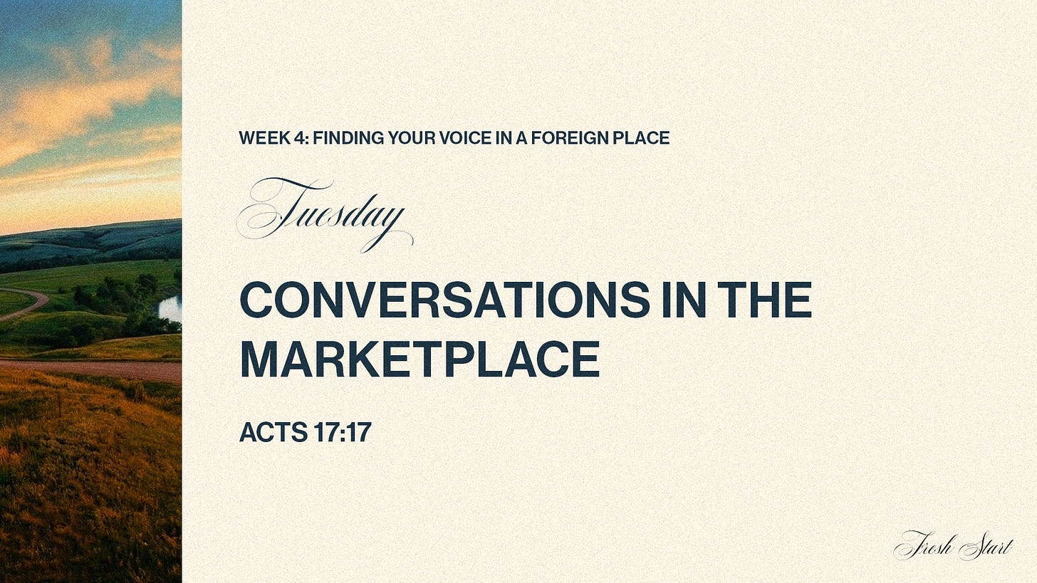 Someone in Athens built an altar to a god they couldn’t name. Just in case. Just because they sensed there was something more than what they could see and categorize. Paul didn’t mock that altar. He honored it. He saw it as evidence that the human heart reaches for God even when it doesn’t know God’s name. We all build altars to unknown gods — those moments when we sense something larger than ourselves in a piece of music, a conversation that goes deeper than expected, a sunset that stops us mid-step. The longing is real even when we can’t articulate it. Paul’s genius was meeting people at their own altar, their own searching, and saying: what you’ve been reaching for has a name. The unnamed longing in your life isn’t random. It’s an invitation.