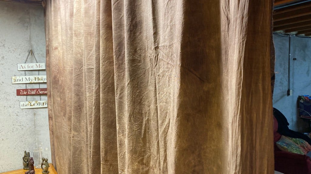I am using a 10'x13' Hand Painted Tie Dye Muslin Backdrop to cover the remainder of our basement while giving a clean backdrop.