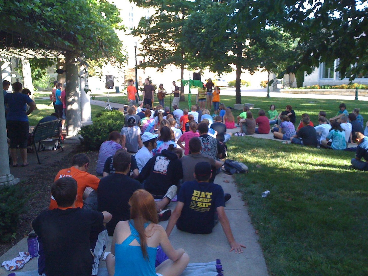 I spent last week at a youth camp, Institute 2010: God's All Stars, which is a ministry of the Conference Council on Youth Ministry of the Kansas East Annual Conference. This post is part of a series reflecting on the week and making applications for the local church. Part of the practice of the week at camp was to share a prayer square. Here is the practice of the prayer squares: