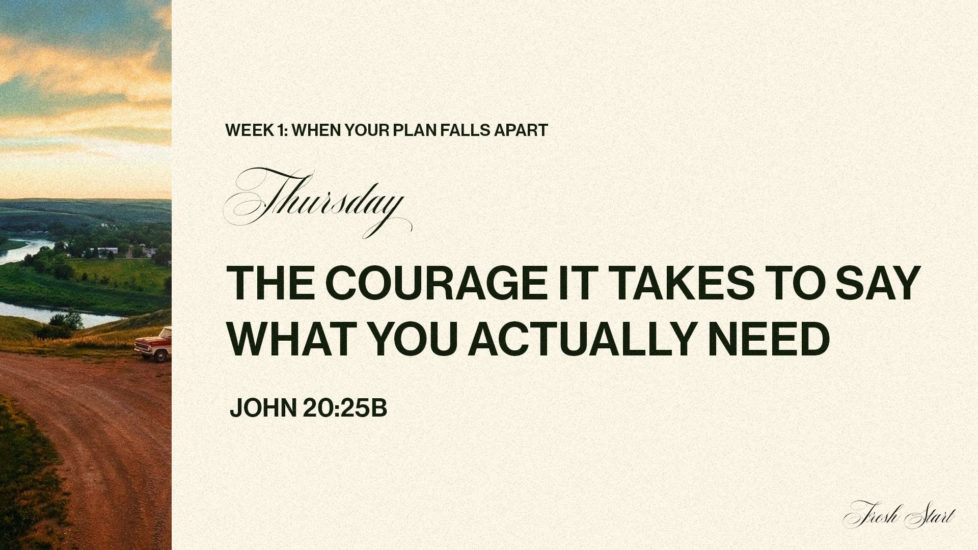 Today, consider one thing you need but haven’t been willing to say out loud. To a friend, a spouse, God — whoever needs to hear it. Thomas’s honesty didn’t disqualify him from encounter. It made encounter possible.