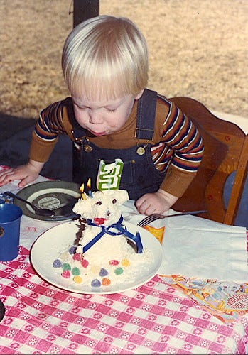 A happy birthday celebration with a photo from my third birthday. Thanks to my dad for the photo.